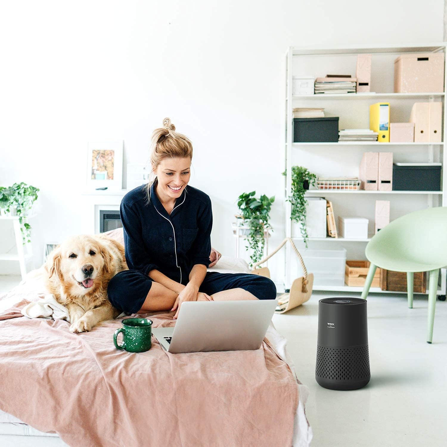- Praktyczny design: Oczyszczacz jest estetycznie wykonany, a jego budowa oraz zastosowane filtry sprawiają, że zasysa on powietrze ze wszystkich stron, co poprawia jego efektywność.
