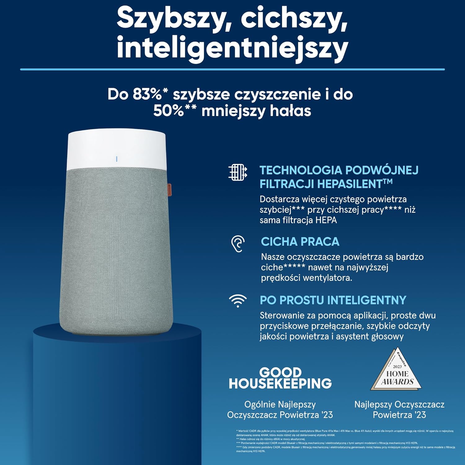 Odkryj nową serię Blueair Blue Max, wyposażoną w opatentowaną technologię HEPASilent™, która zapewnia do 83% szybsze oczyszczanie powietrza i o 50% mniej hałasu w porównaniu z poprzednimi modelami Blue. Ta zaawansowana linia oczyszczaczy powietrza została zaprojektowana z myślą o wydajnym, cichym i wysokowydajnym oczyszczaniu powietrza.