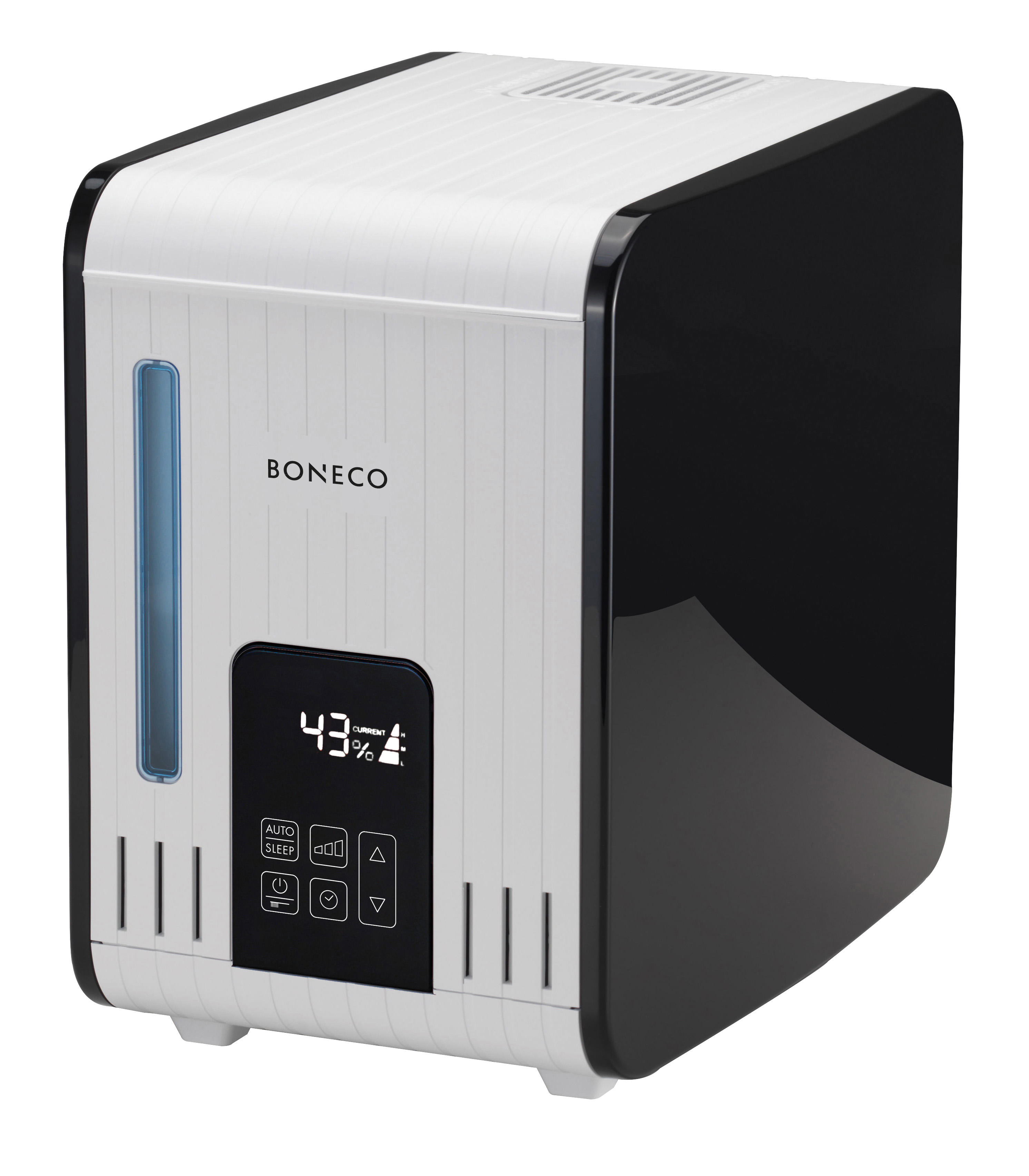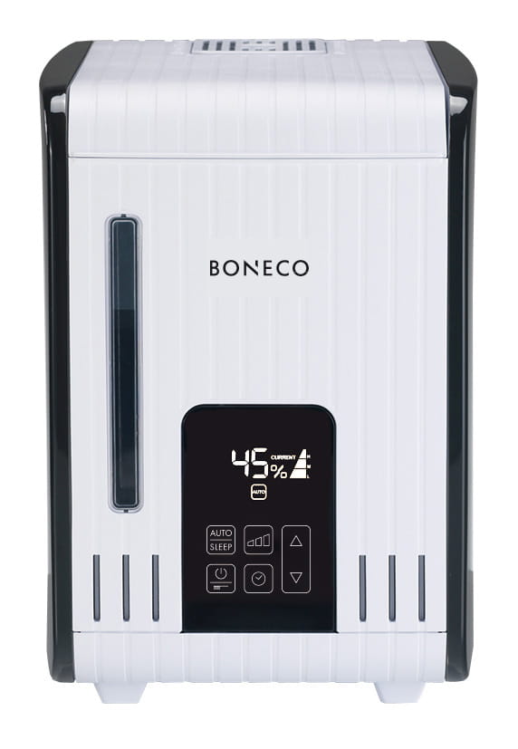 To nawilżacz parowy, z którego wydobywa się para o temperaturze przyjemnej dla ciała, co sprawia, że jest to idealne rozwiązanie dla rodzin z dziećmi i wszystkich tych, którzy chcą stworzyć w domu zdrowe środowisko. Istota działania nawilżacza parowego, czyli podgrzewanie wody, eliminuje wszelkie bakterie i drobnoustroje, a powietrze jest czyste i optymalnie nawilżone. BONECO S450 wyposażony jest w zintegrowany higrostat, który automatycznie reguluje moc wyjściową, aby zapewnić pożądaną wilgotność względną. Czas włączenia i wyłączenia można wybrać za pomocą włącznika / wyłącznika czasowego. Posiada praktyczne ułatwienie w postaci wkładki Anti-Mineral-Pad, która wiąże wapno i zmniejsza częstotliwość odwapniania, natomiast specjalny tryb odwapniania automatycznie czyści urządzenie. Sterowanie urządzeniem odbywa się za pomocą panelu dotykowego i wyświetlacza cyfrowego.
