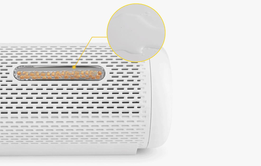 Innowacyjny design produktu sprawia, że wyróżnia się on sporą efektywnością. Dzięki cylindrycznej konstrukcji CS50MW pochłania wilgoć ze wszystkich stron, działając w promieniu 360°. To sprawia, że może osuszać powietrze na większych obszarach niż standardowe urządzenia tego typu. Z jego pomocą bez problemu stworzysz bezpieczne dla zdrowia środowisko w całym swoim domu.