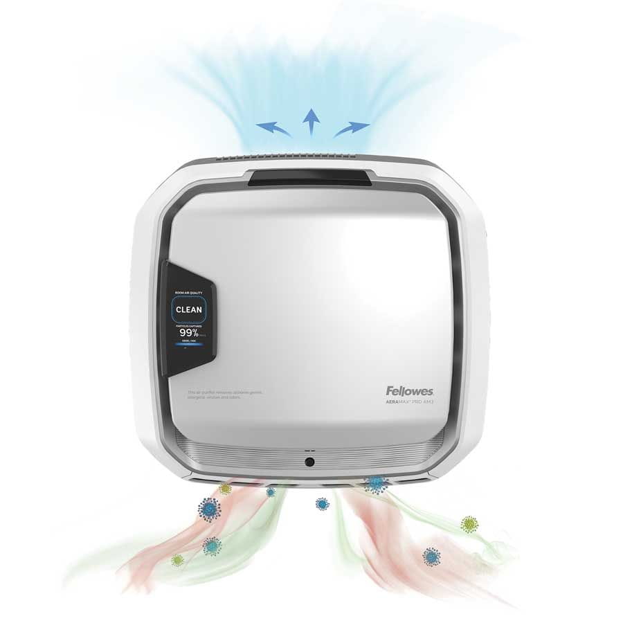 *Oczyszczacze powietrza Fellowes AeraMax® Pro AM3 i AM4 w niezależnych testach laboratoryjnych uzyskały 99,9999% skuteczności w usuwaniu stężonego aerozolu koronawirusa SARS-CoV-2 podczas jednego cyklu przepływu powietrza przez urządzenie. Ponadto w oparciu o niezależne badania laboratoryjne przeprowadzone w komorze testowej o pojemności 20 m3 wykazano, że oczyszczacze powietrza Fellowes AeraMax® Pro są skuteczne w zmniejszaniu stężenia ludzkiego koronawirusa 229E rozpylonego w powietrzu, osiągając 99,99% redukcji ilości wirusa w ciągu 1 godziny pracy.