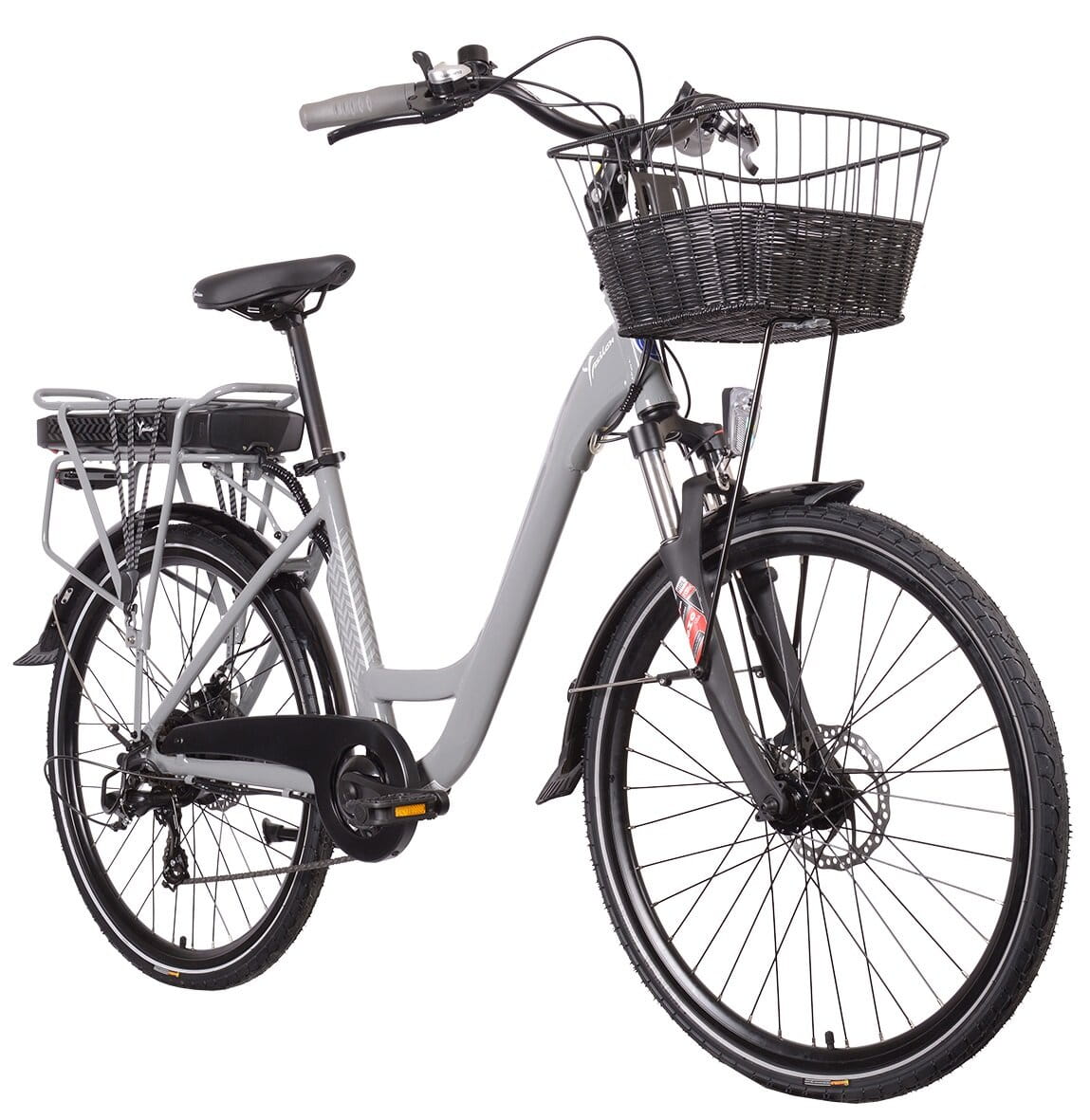 W rowerze elektrycznym LANCIA YPSILON Incanto dołączono do wyposażenia koszyk. Ma on dużą pojemność, dzięki której możesz spakować swoje zakupy lub włożyć do niego plecak i bez obciążenia kręgosłupa wyruszyć w dłuższą drogę.