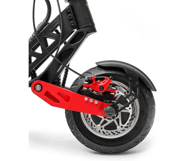 Po osiągnięciu maksymalnej prędkości, którą oferuje hulajnoga elektryczna Motus Pro 10 Sport 2021, możesz mieć pewność, że bezpiecznie wyhamujesz dzięki podwójnym sportowym hamulcom.
